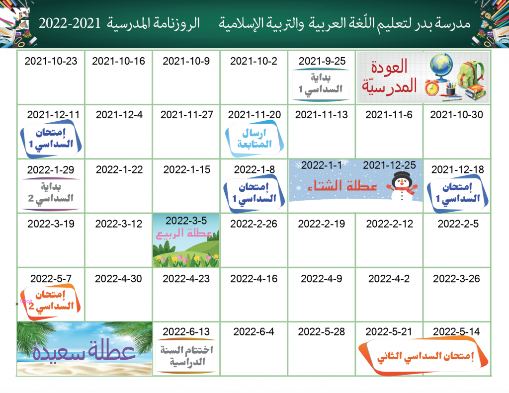 calendrier ecole arabe